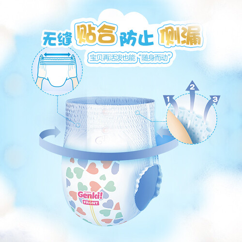 拉拉裤的背部和侧边均采用防漏设计,可无缝贴合宝宝身体,有效防止尿液侧漏和后漏。日本原装进口,双层无纺布面层,柔软亲肤。