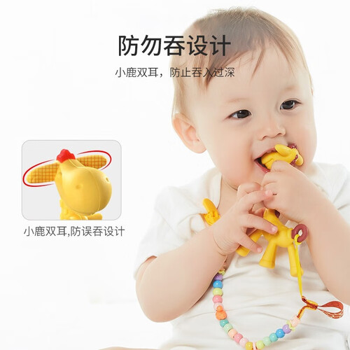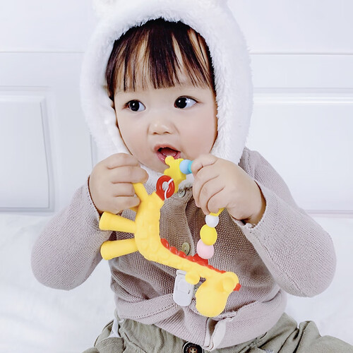 采用可爱长颈鹿的造型精美可爱,容易吸引宝宝抓握,锻炼宝宝手部的力量。采用多形态啃完点,舒服按摩宝宝牙龈。