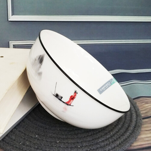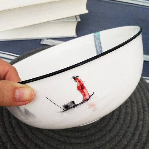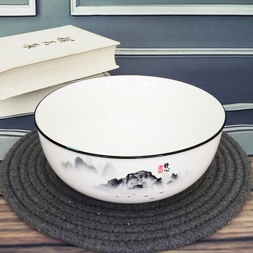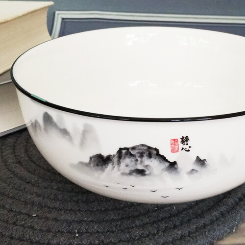 水墨画图案设计,精美自然,细节丰富,看起来唯美生动,富有禅意。加厚碗壁设计,隔热性好,握感舒适。