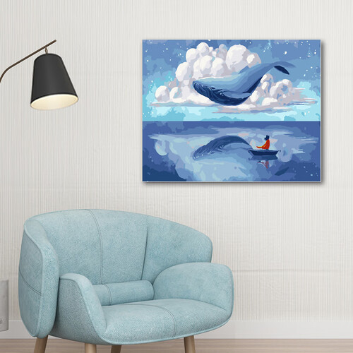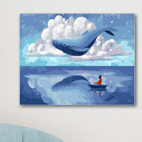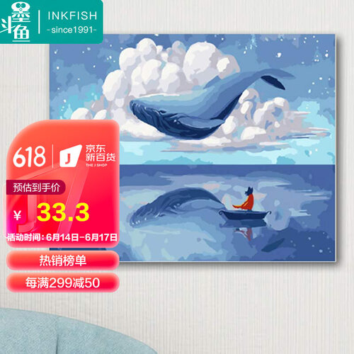 墨斗鱼 手工填色蓝鲸数字油画