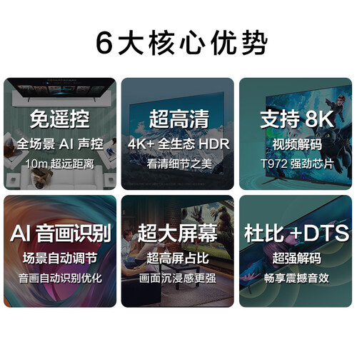 这款电视设有手机投屏功能,可将手机上的视频、照片等投屏共享。并可识别明星脸,提升其娱乐性。