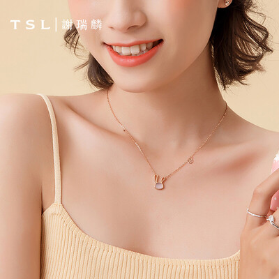 谢瑞麟 时尚玫瑰金兔耳朵项链