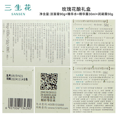 添加了玫瑰花以及多种植物鲜花的萃取成分,具有高度保湿的功效,同时很好美白肌肤。质地水润,能够快速被吸收。