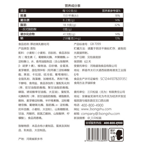 三只松鼠 岩烧乳酪吐司