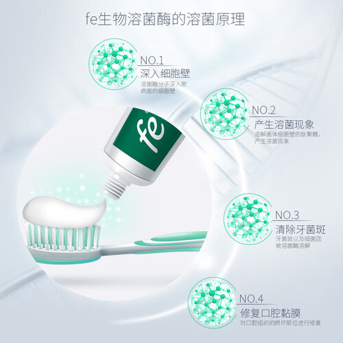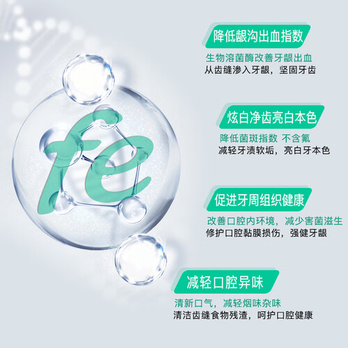 含生物溶菌酶因子,保护牙龈健康,可改善出血肿痛等问题。添加茶叶精粹,不仅能吸附异味,还可以软化清除牙渍污垢。