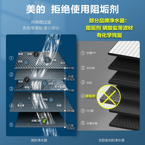 采用高精度的5级过滤系统,速度去除自来水中的泥沙及细小颗粒等有害物质,保障水质澄清不浑浊。