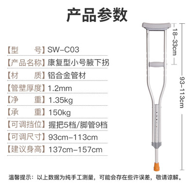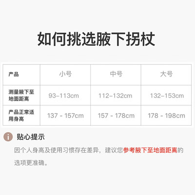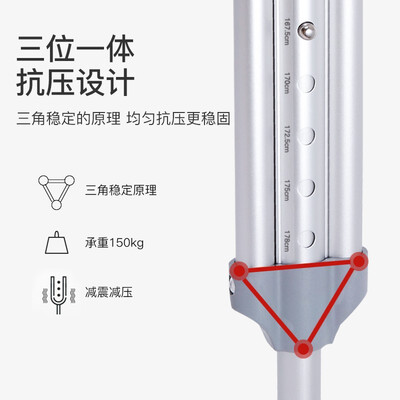 精选优质铝合金材质,加以三位一体抗压设计,均匀抗压,提升承重力,经久耐用。TPR软性腋托设计,柔软护腋,久柱不累。
