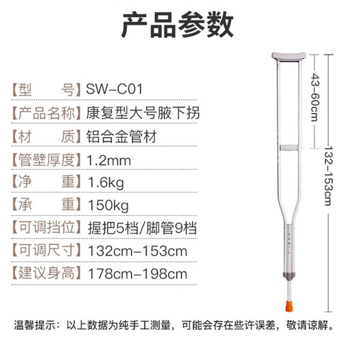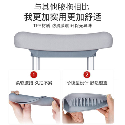 顶部带有TPR软性腋托,柔软度高,环保无异味,使用更安全放心。握把设有五种不同可调节段位,可依据手臂长短随心调整。