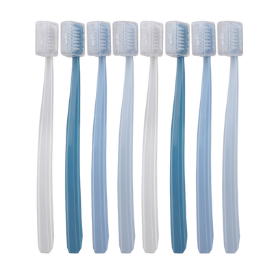 牙刷的渐变色设计的非常漂亮,流畅的刷柄设计,握感更舒适。每一个都有独立的保护套,外出携带也方便。