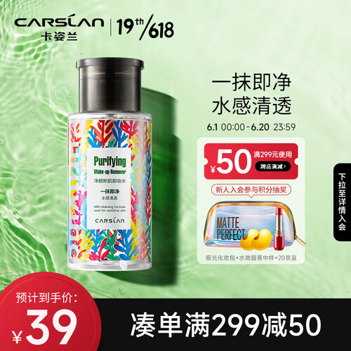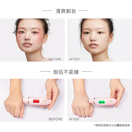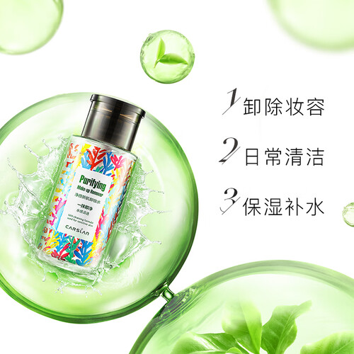 成分中蕴含鲜绿茶、积雪草等多种植萃提取成分,卸妆的同时还可以温和保湿。配合化妆棉一擦即净,操作更加简单方便。