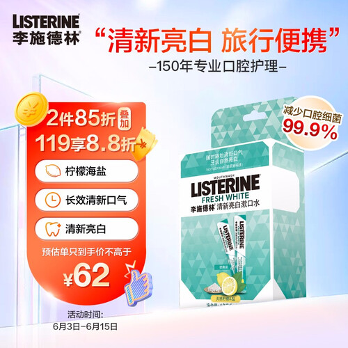 漱口水采用独立小包装,一次一包携带非常方便。柠檬的清爽混合海盐的味道,口感很舒适,使用后清新又爽朗。