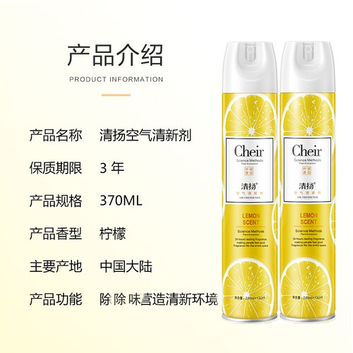产品拥有质量认证证书,看得见的品质保障,使用更加安全可靠。柠檬香型喷雾,为您还原空气清新的家居空间。
