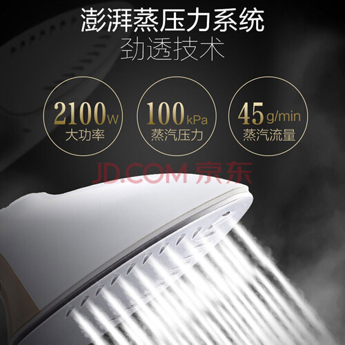 载有澎湃蒸压力系统,拥有科学的劲透技术,2100W大功率,让蒸汽更汹涌。喷头可二次加热,摆脱潮湿滴水困扰,即熨即穿。