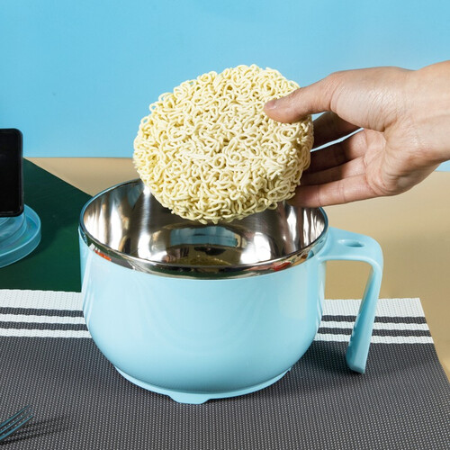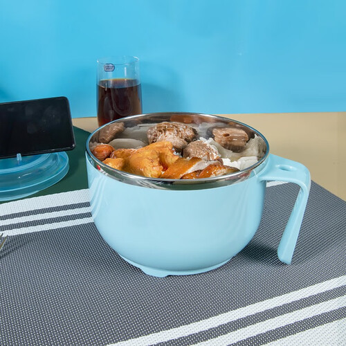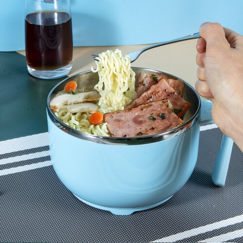 采用健康不锈钢材质,不易生锈,结实又耐用;大容量设计,面饼轻松放;碗盖可变身手机支架,追剧吃饭两不误。