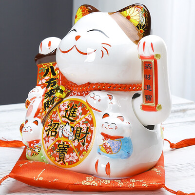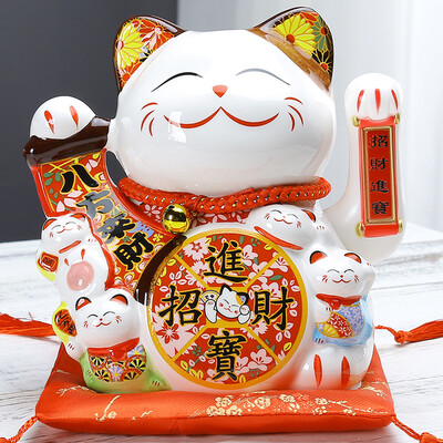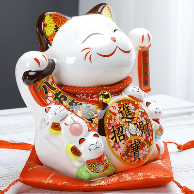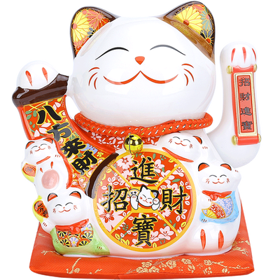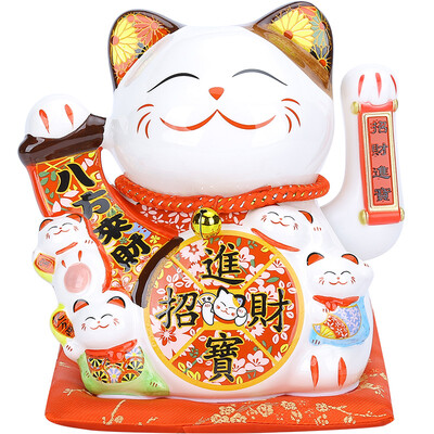 招财猫胸前围绕的四只形态各异小猫,使得招财猫具有招财进宝、财运亨通之意。配备上红色围绳设计,可为整体造型添加美感。