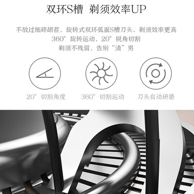 采用旋转式双环弧面刀头,便于清除多种类型胡须,提升剃须效果。内置大容量电池,续航时间长,可避免频繁充电。