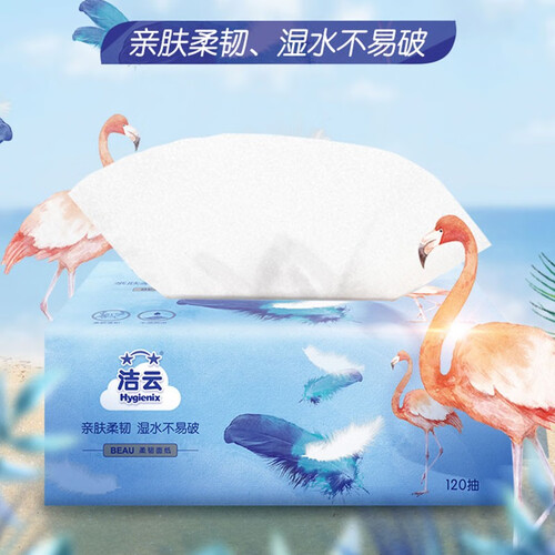 采用笑脸开口的设计,搭配首张折叠的设计,让你使用时易撕易抽取,更加舒心;包装上带有火烈鸟图案的设计,更显时尚美观。