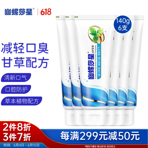 幽螺莎星的这款牙膏采用中草药配方,清新口气无异味,并且有效减少牙菌斑和牙渍,呵护口腔卫生和健康。