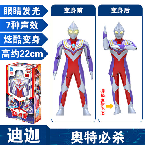 将童年记忆中的奥特曼招式全部还原,结合多重音效设计和经典台词,带来震撼的游戏体验。玩耍方式简单,按下背后按钮即可发出声音。