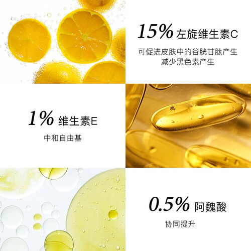 添加左旋维生素C的成分,改善肌肤老化的痕迹,有效预防日间氧化损伤,提亮美肌。维生素E的提取,淡化细纹辅助吸收。