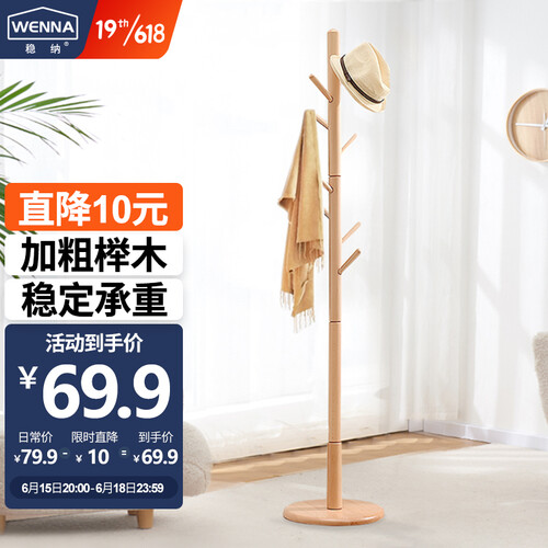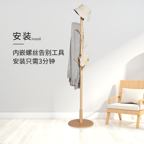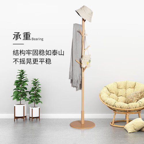 心家宜承重力强稳固实木衣帽架