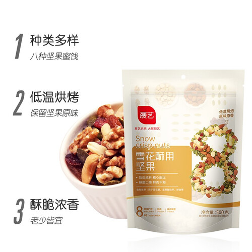 采用低温烘烤设计,有助于保留坚果原有的香味,口感更加酥脆香醇。自带封口拉链设计,具有防潮特点,随取随用干净卫生。