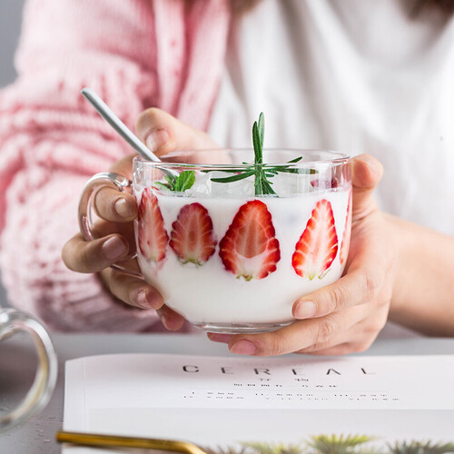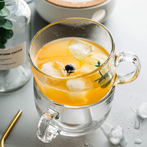 把手加大加厚,与杯身一体成型,能够阻挡热量,方便你端拿饮用;采用高通透的玻璃材质,可以更好的展现食物的美。