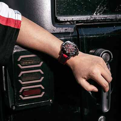 与众不同的采用陶瓷材质来制作表圈,用细腻的质感来提高手表的档次。硅胶皮带的配色与表圈色彩相同,此般呼应更有整体美感。