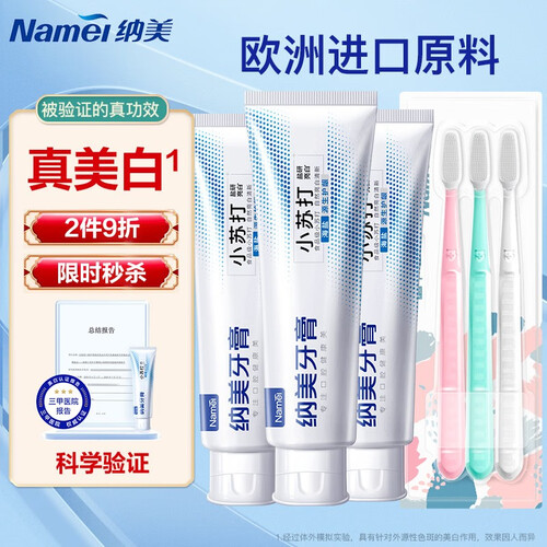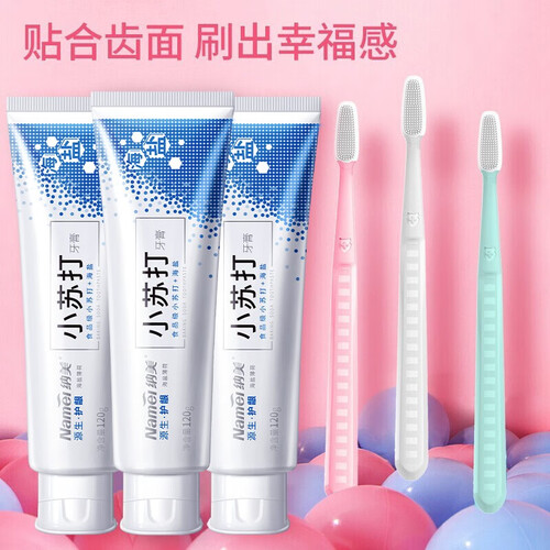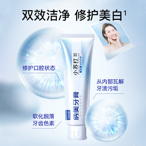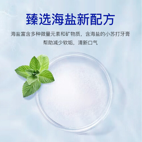 牙膏中添加了小苏打,弱碱性配方,能帮助减少牙菌斑,贴心呵护你的口腔健康,美白效果更好。
