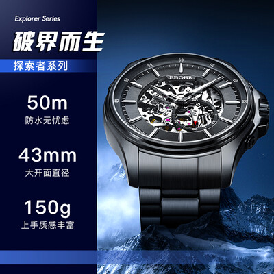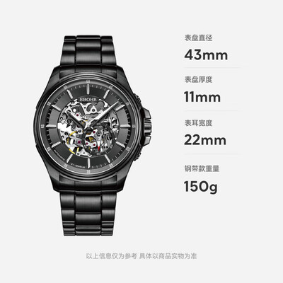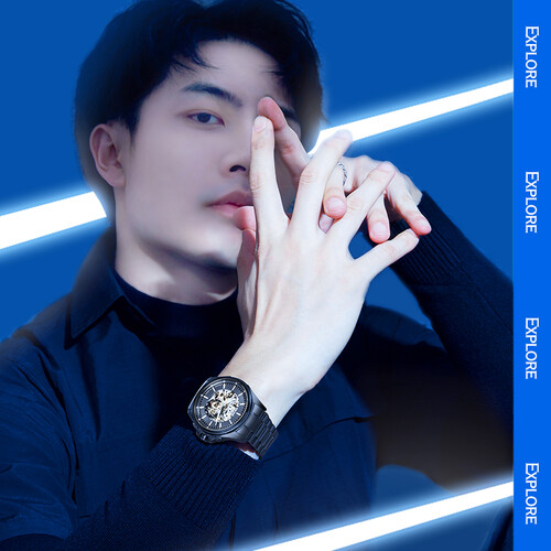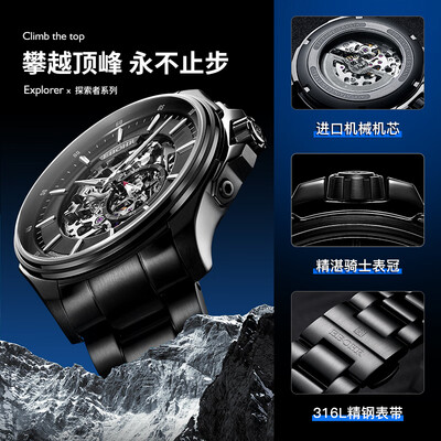 采用了镂空表盘设计,正面即可洞见机芯运转,缜密的运作,打造科技感,不锈钢实心表带设计,不易生锈。