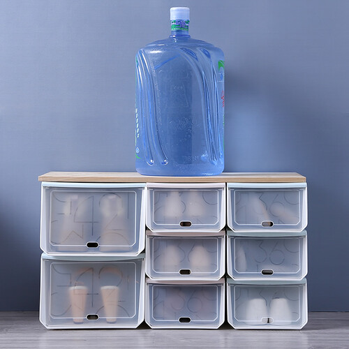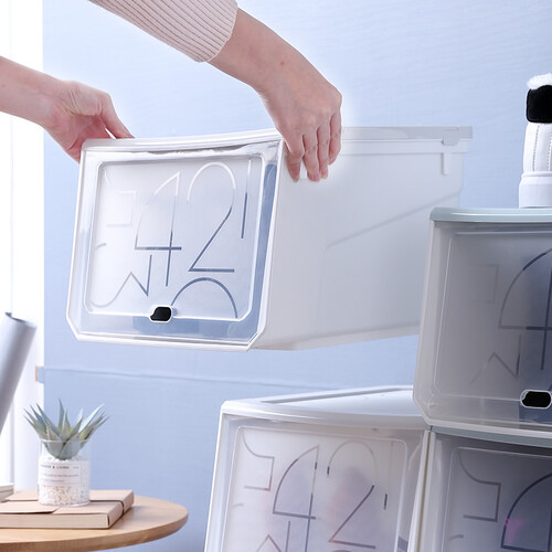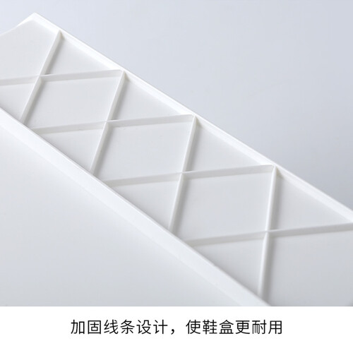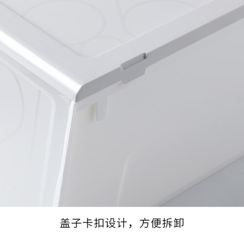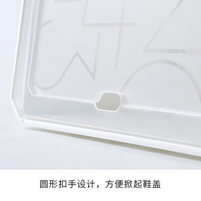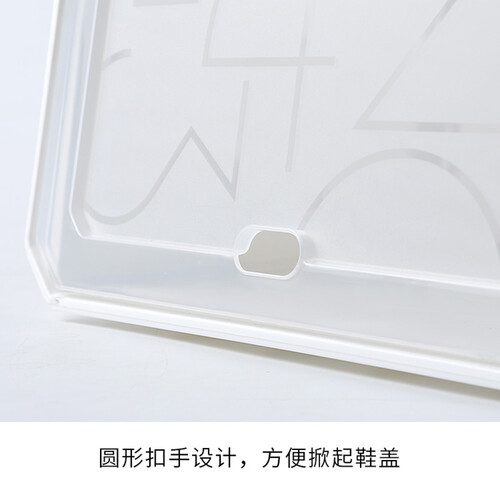 翻盖式设计,有效抵挡空气中灰尘和粉尘的侵袭,保持鞋子干净卫生。盖子处拥有卡扣,方便拆卸,可以经常清洗。
