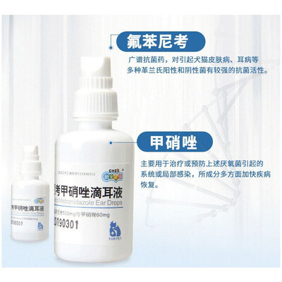 可以缓解猫咪的中耳炎与外耳炎,有效治疗耳朵瘙痒等问题。添加有氟苯尼考、甲硝锉等物质,具有良好的抗菌活性。