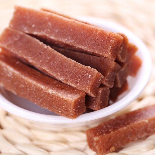 甄选自然成熟的新鲜山楂,经去核、蒸煮和打浆等多道工序制作,山楂条软硬适中,入口软糯酸甜、细腻无渣,宅家追剧品尝十分开胃。