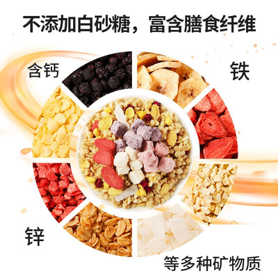 50%的水果、坚果与燕麦搭配,做到均衡全面的营养供给。低热量、非油炸的优点,兼顾减肥的同时又保证了健康。