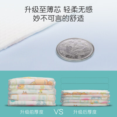 热风工艺面层亲肤透气,升级的立体凸点面层能够减少对宝宝肌肤的摩擦刺激,穿起来还是稍微有点摩擦感。吸收量偏小需及时更换哦。