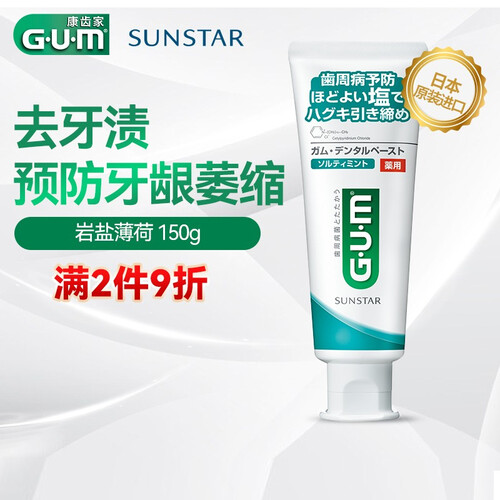 GUM,日本牙周护理品牌。这款牙膏添加岩盐成分,能够帮助紧致牙周。还能够减少牙周致病菌,强健牙龈,清新口气。