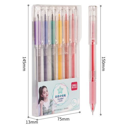 得力 彩色带笔夹中性笔