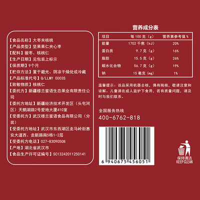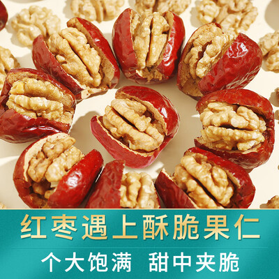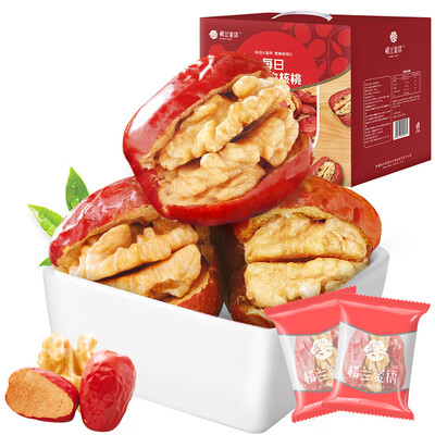 饱满红润的大枣夹着细腻酥脆的核桃,迸发双重口感,营养翻倍。果肉厚实软糯,吃起来甜而不腻,甘甜适中,一口下去惊爆你的味蕾。