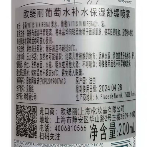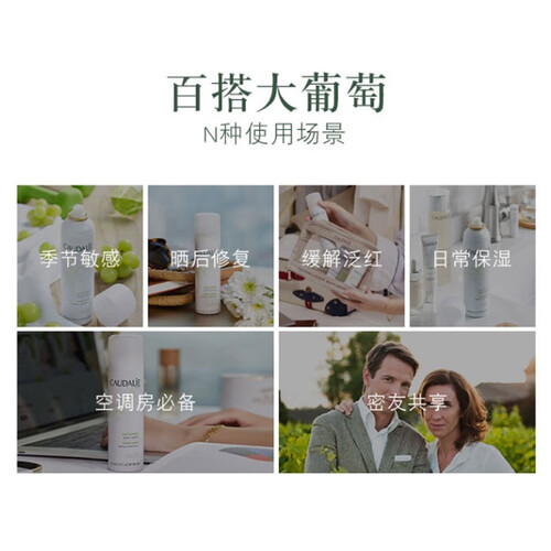 添加葡萄萃取精华,富含丰富的矿物质和多糖,舒缓肌肤同时更保湿。按压式喷雾,水雾细密,随身滋润肌肤更方便。
