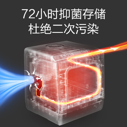 采用72度高温清洗,能够快速分解油脂污垢,令清洁更彻底。而立体喷水,出水均匀全面包裹,深层洁净不伤餐具。
