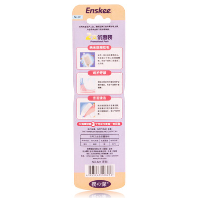 采用纳米软毛,具有柔软减压的特点,舒适护理口腔卫生。刷头背面具有舌苔清洁器,能帮助清洁口腔内壁和舌苔。