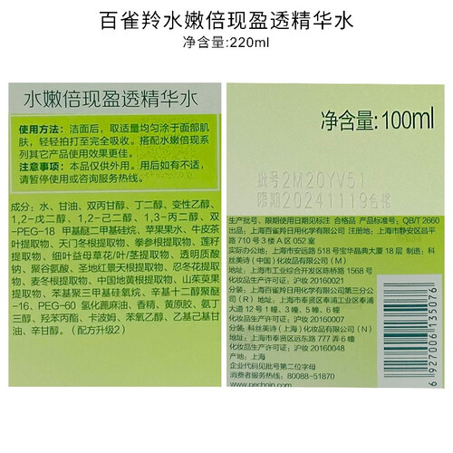 含有益母草、红景天、忍冬花等草本精华,为肌肤注入充足的营养和水分。添加透明质酸钠,快速提升肌肤含水量,提升肌肤水润度。