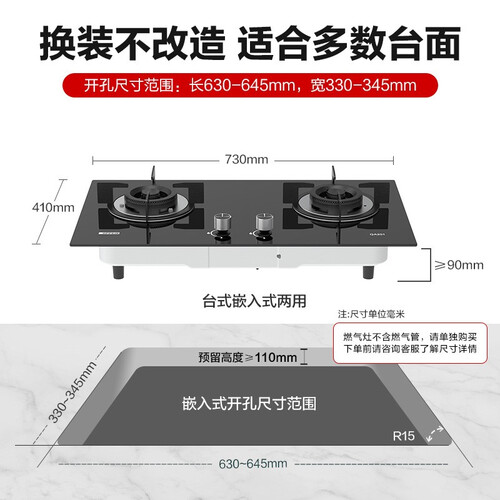 欧派 台嵌两用不锈钢燃气灶
