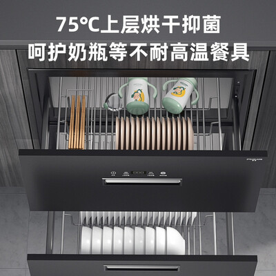 上下分层设计,不同的餐具可以单独放置,拿取更便捷。高低温组合消毒,根据不同的需求自行切换合适的温度,随心所欲。