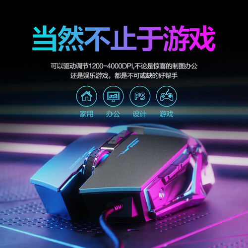 4000DPI可调节,使用方便,滑动顺畅,精准定位,提高工作效率。静音按键,工作舒心,游戏畅快。