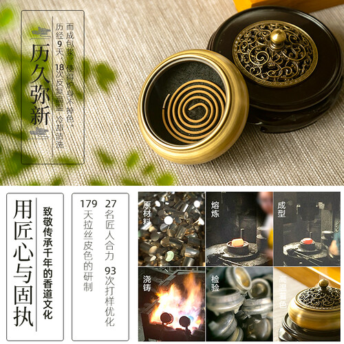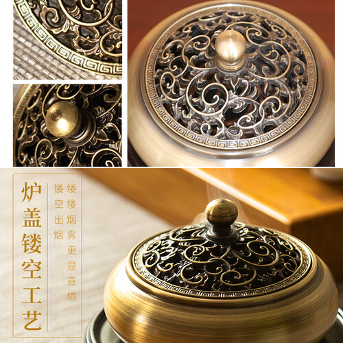 包含香炉、盘香、点香棉和铜香插,使用更加便捷,纯铜香炉坚固耐用,造型古朴大气,提升家居格调。
