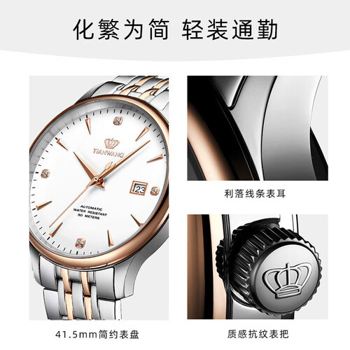 采用人工合成的蓝宝石玻璃镜面,耐磨高密度,透光率佳,读时更清晰。齿轮表冠,精细切割打磨,彰显匠心工艺。