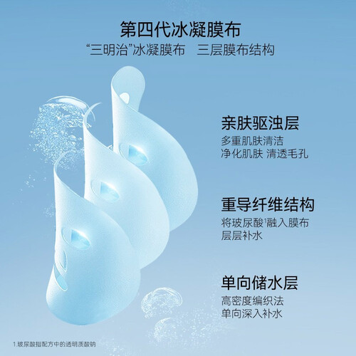 选用的是玻尿酸冰凝膜布,轻薄服帖,单向补水不流失。添加深洋海葡萄,维持角质层水分,肌肤时刻水润丰盈。