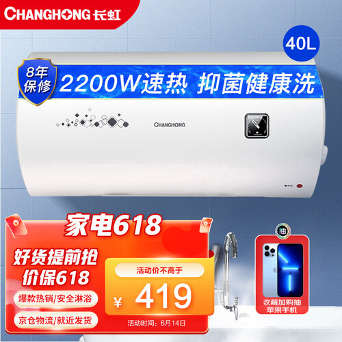 你家的电热水器够安全吗?这款电热水器内置防电墙,多重防护功能,保障用水纯净卫生,守护全家人的沐浴安全。