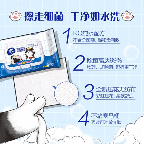 吾皇万睡定制款,表面印有吾皇万睡漫画,每次使用都有好心情。不含杀菌剂,采用RO纯水配方,温和擦走细菌,不伤肌肤。